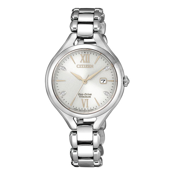Eco-Drive, Damenuhr, EW2560-86A, Metallband, Faltschliesse, Super Titanium, Diamanten, 123168, und Versandkostenfrei ! Saphirglas, 5 bar wasserdicht, Gehäuse 30 mm Durchmesser, 24 Monate Herstellergarantie, Lieferumfang Original-CITIZEN: Uhr, Etui, Garantiekarte, Beschreibung, alles geschützt verpackt in einem Lieferkarton !