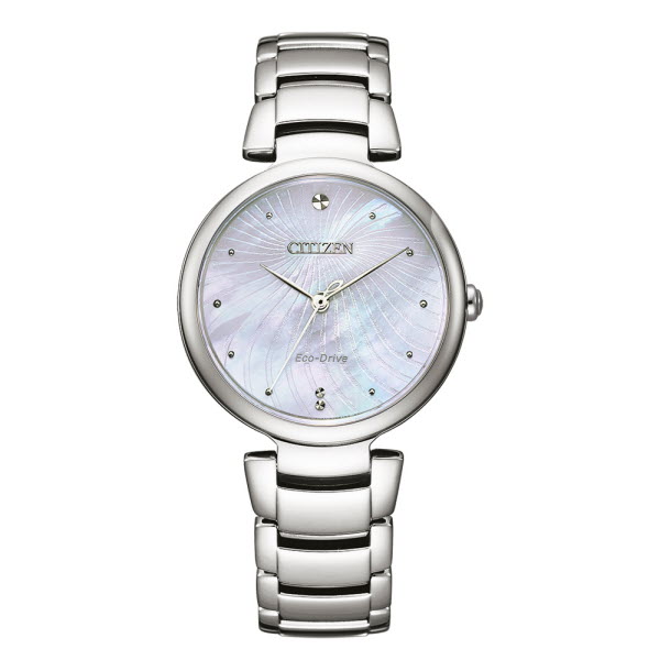Eco-Drive, Damenuhr, EM0850-80D, Edelstahl, Metallband, Faltschliesse, Perlmuttzifferblatt, 123557, und Versandkostenfrei ! Saphirglas, 5 bar wasserdicht, Gehäuse 31 mm Durchmesser, 24 Monate Herstellergarantie, Lieferumfang Original-CITIZEN: Uhr, Etui, Garantiekarte, Beschreibung, alles geschützt verpackt in einem Lieferkarton !
